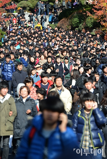 2013 대입 수시 논술고사가 진행된 18일 오후 논술고사를 마친 수험생들과 학부모들이 서울 성동구 한양학교를 빠져나가고 있다.