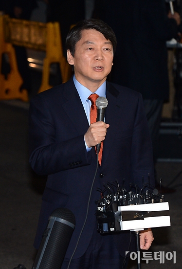 안철수 무소속 대선 후보가 18일 오후 서울 중구의 한 식당에서 문재인 민주통합당 대선 후보와 단일화 회동에 앞서 모두발언을 하고 있다.