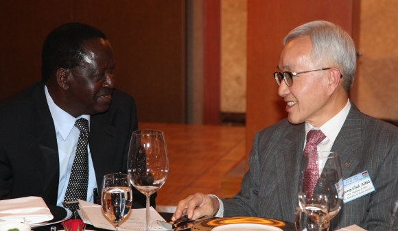 전국경제인연합회는 지난 20일 소공동 롯데호텔에서 양국간 교역·투자, 에너지·자원 등 경제협력 증진 방안를 논의하기 위해 오딩가 케냐 총리를 초챙해 기업인 간담회를 개최했다. 정병철 전경련 상근부회장(오른쪽)과 오딩가 총리(왼쪽)가 환담을 나누고 있다.