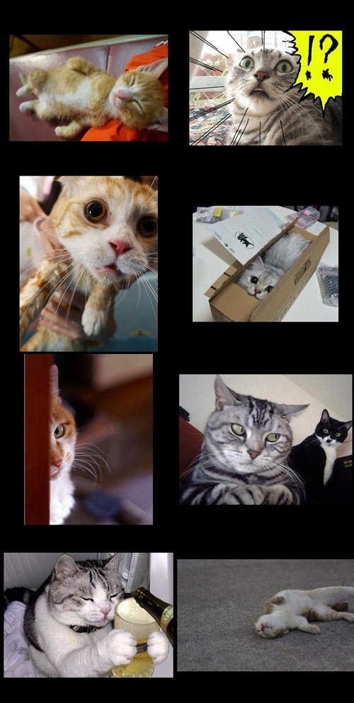 공개된 사진에는 다양한 고양이들의 모습을 직장인의 하루에 빗대 표현했다.