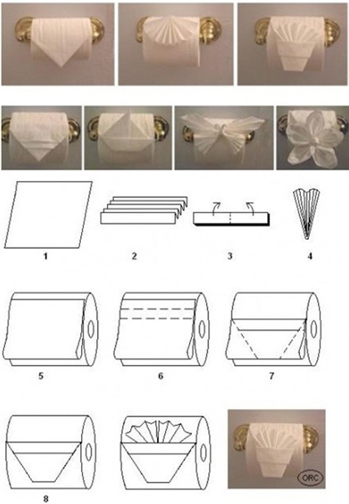 공개된 사진에는 평범한 휴지가 호텔 휴지로 변신하는 방법이 소개돼 있다.