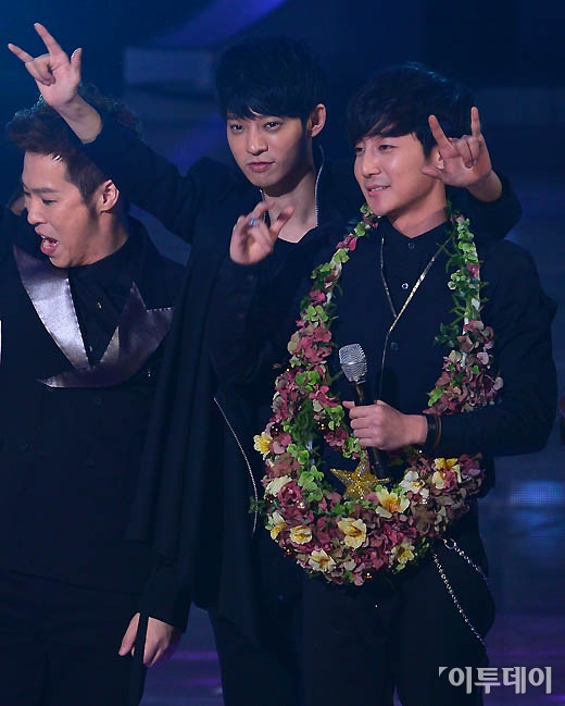엠넷 대국민 오디션 '슈퍼스타 K4' 결승무대가 23일 서울 잠실실내체육관에서 열린 가운데 우승을 차지한 로이킴이 동료들의 축하를 받고 있다. 이날 로이킴이 딕펑스와 치열한 결승무대를 벌인 끝에 최종 우승을 차지하게 됐다.