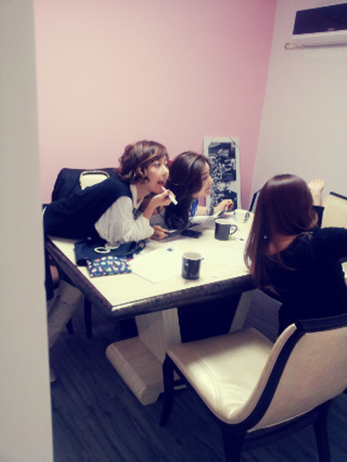 팬미팅을 앞두고 화장에 열중하고 있는 세 사람의 모습이 웃음을 자아낸다.
