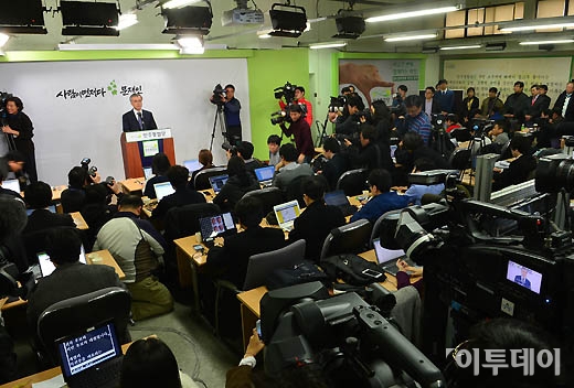 문재인 민주통합당 대선 후보가 25일 서울 영등포 당사에서 기자회견을 갖고 대선후보등록 마감 후 본격 선거전에 돌입하는 소감을 밝히고 있다.