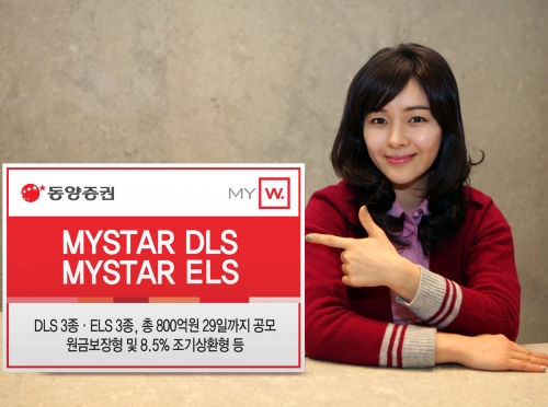 동양증권은 오는 29일까지 KOSPI200, S&P500, 삼성전자, POSCO를 기초자산으로 하는 원금보장형 ELS 1종과 조기 상환이 가능한 원금비보장형 ELS 1종 및쿠폰지급형 ELS 1종을 비롯해 쿠폰지급형, 원금비보장형 DLS 3종 등 총 6종의 ELS, DLS 상품을 800억원 규모로 공모한다고 27일 밝혔다.