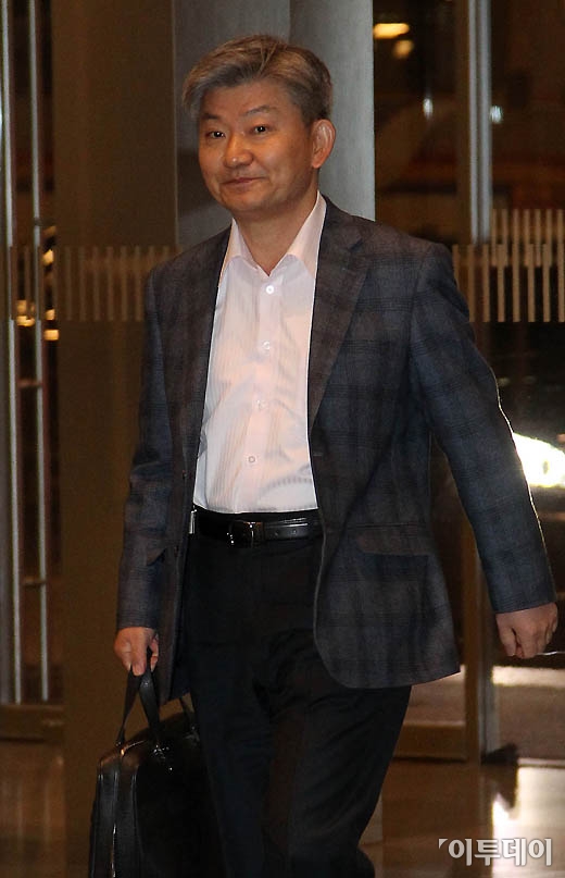 5일 서울 삼성전자 서초사옥에서 2013년 사장단 회의가 열린 가운데 제일기획 사장에 임명된 삼성미래전략실 임대기 부사장이 출근길에 나서고 있다.