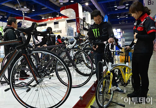 2013 서울 바이크쇼가 7일 서울 삼성동 코엑스에서 열린 가운데 참가자들이 다양한 자전거를 살펴보고 있다.