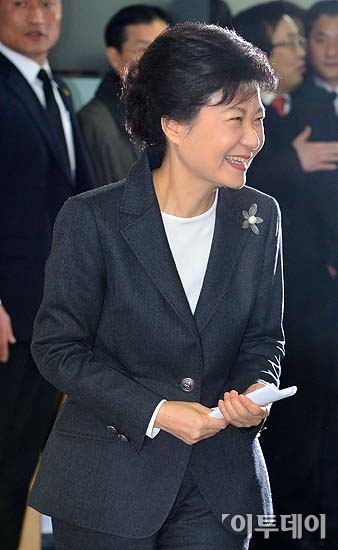 박근혜 제 18대 대통령 선거 당선자가 20일 오전 서울 여의도 새누리당 당사 기자실에 들어서고 있다.