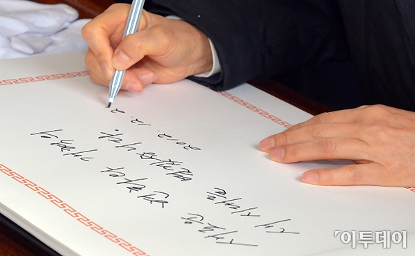 [포토]방명록 작성하는 박근혜 대통령 당선인
