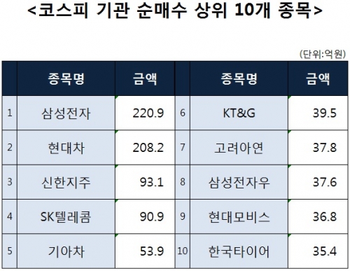 [코스피 기관 순매수 상위 10개 종목]