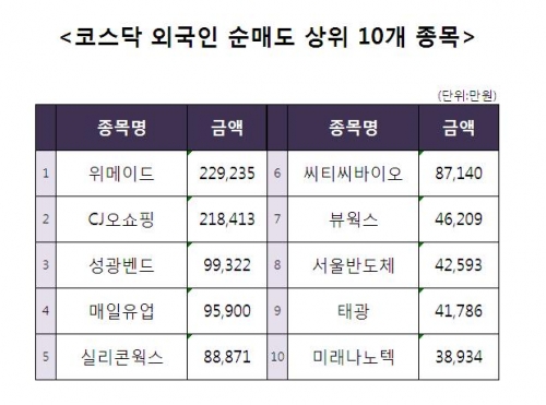 [코스닥 외국인 순매도 상위 10개 종목]