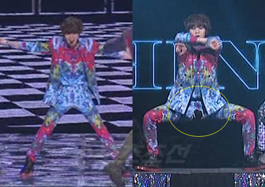 이날 2부에 등장한 샤이니는 '셜록'에 맞춰 완벽한 군무와 퍼포먼스로 시선을 단번에 사로잡았다. 이때 태민의 바지가 찢어지는 사고가 발생한 것.