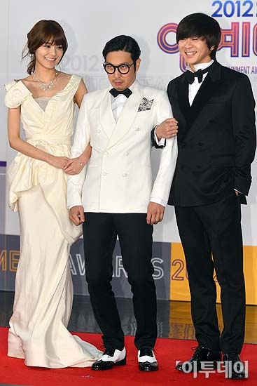 방송인 하하와 소녀시대 수영, 가수 윤도현이 30일 오후 서울 상암동 SBS 프리즘타워에서 열린 '2012 SBS 연예대상' 시상식에 참석해 레드카펫을 밟고 있다.