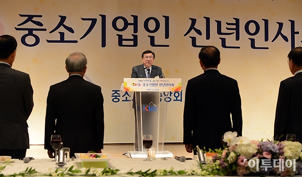 김기문 중소기업중앙회 회장이 4일 오전 여의도 중소기업중앙회에서 열린 ‘2013 중소기업인 신년인사회’에 참석해 축사를 하고 있다.