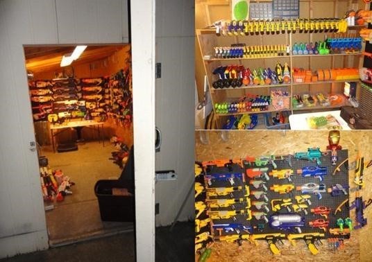 특히 첩보영화의 한 장면을 연상시킬 정도로 장난감총이 종류별로 가지런히 진열돼 있다. 마치 중요한 무기를 숨겨놓은 벙커처럼 보여 누리꾼들의 시선을 집중시키고 있다.