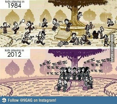 해당 게시물은 1984년도의 아이들이 노는 모습과 2012년 아이들이 노는 모습을 비교해 그려놓았다.