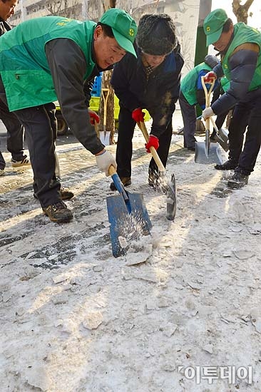 [포토]빙판길 낙상사고 주범 얼음 제거작업