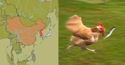 최근 한 온라인 게시판에는 ‘미국인이 보는 한중일’이라는 이름으로 한국 중국 일본이 나와있는 아시아 지도와 멸치를 쫓는 한 마리의 닭 사진이 나란히 공개됐다.