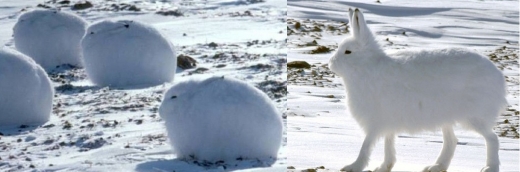 사진 속에는 추위를 피하기 위해 몸을 한껏 웅크리고 있는 여러 마리의 토끼들이 등장한다. 흡사 눈 덩이로 보일 듯한 착각을 불러일으킬 정도로 동그랗게 몸을 웅크리고 있는 모습이다. 하지만 뒤이어 등장한 사진에는 한 마리의 토끼가 자리에 일어난 모습을 등장하는데 여기서 반전이 일어난다.