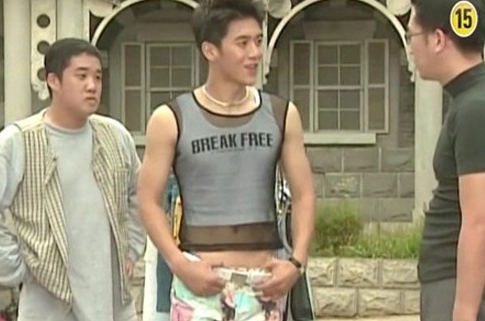 '고수 흑역사' 사진 속 고수는 흰 색 민소매 티셔츠에 망사옷을 입고 있다. 이 같은 모습은 지난 1999년 KBS2 드라마 '광끼' 출연 당시로 극중 톱스타 '호수' 역을 연기하고 있는 장면이다.