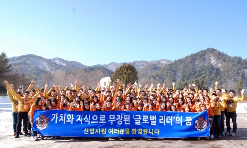 8일 이랜드 신입사원들이 강원도 켄싱턴 플로라 호텔에서 진행된 신입사원합숙교육에서 화이팅을 외치고 있다. 이들 207명의 신입사원은 지난해 하반기 공채에서 170대 1의 경쟁률을 뚫고 선발된 인재들로 8일부터 2주간의 합숙훈련에 들어갔다.
