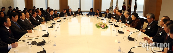[포토]박근혜 대통령 당선인, 전국상공인 대표와 간담회