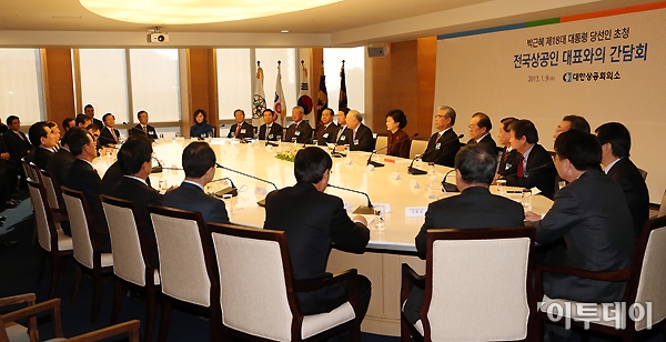 [포토]박근혜 대통령 당선인, '전국상공인 대표와 간담회'