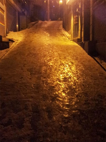공개된 사진에는 집으로 가는 골목길이 빙판길로 변해있는 모습이다. 특히 비탈진 언덕길이 계속되는 영하의 날씨 때문에 얼어붙어 위험해 보인다.