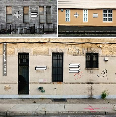게시물은 벽이 마주 보이는 길가의 사진이다. 특이하게도 창문과 창문 사이에 덧셈, 뺄셈 등 수학 부호들이 함께 있고 이에 해당하는 답도 창문으로 제시해놨다.