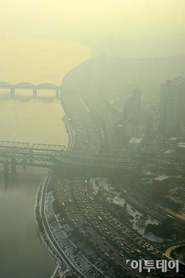 [포토]연무 낀 올림픽대로