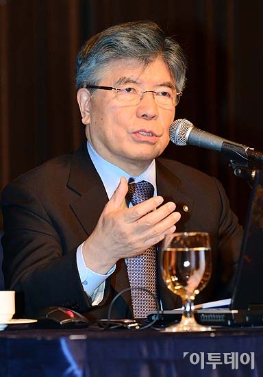 김중수 한국은행 총재가 16일 오전 서울 중구 소공동 롯데호텔에서 한국금융연구원이 주최로 열린 금융경영인 조찬강연회에서 ‘국내외 경제여건 점검 및 2013년 전망’이란 주제로 강연하고 있다.