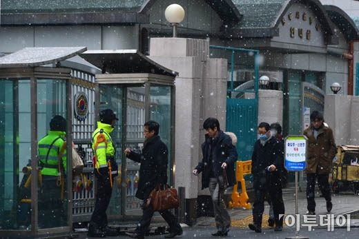 대통령직 인수위원회가 정부조직 개편안을 발표, 많은 부처에 변화가 생긴 가운데 16일 세종로 정부서울청사에서 직원들이 출근길을 재촉하고 있다.