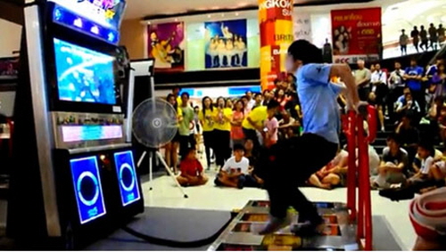 공개된 영상에는 '펌프' 게임기 위에서 화려한 발놀림을 자랑하며 게임을 즐기는 한 남성의 모습이 담겨 있다. 남성을 둘러싼 사람들은 그가 게임을 즐기는 모습을 놀라워하며 바라보고 있다.