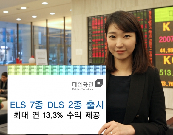 대신증권은 대우증권, 현대백화점, LG상사, SK하이닉스, KOSPI200, S&P500, HSCEI, Nikkei225, 금, 은을 기초자산으로 하는 ELS상품 7종과 DLS상품 2종을 18일까지 판매한다고 16일 밝혔다.