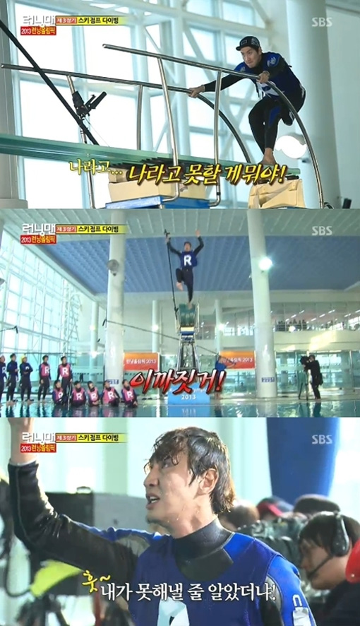 ‘런닝맨’ 이광수가 다이빙 실력을 발휘했다.
