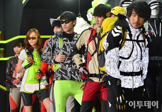아웃도어 브랜드 네파가 22일 서울 삼성동 코엑스에서 올해 새롭게 선보일 브랜드 '이젠벅'을 소개하는 '네파 히스토리 쇼 & 2013 이젠벅 런칭 미니 패션쇼'를 선보이고 있다.