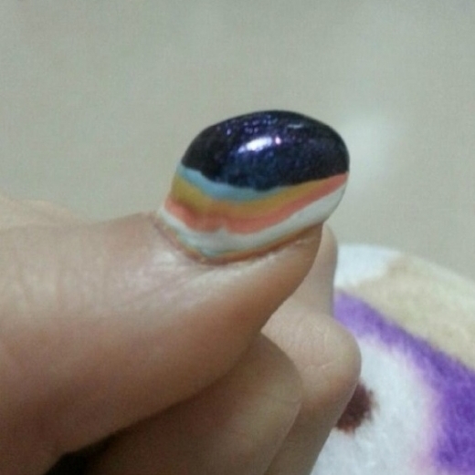 사진을 올린 누리꾼은 엄지손톱에 두껍게 매니큐어 바른 사진을 올리고 ‘뿌듯하다. 헤헤’라고 글을 올렸다.