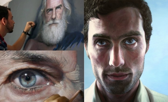 그림들은 마치 사진을 칠판에 붙여놓은 것 같은 착각을 일으켜 보는 이들을 놀라게 한다. 주름과 머리카락 등을 정교하게 표현해 극사실화라고 할 만큼 정교하고 생생하다.