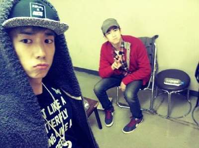 사진 속 장우영은 입술을 내밀며 아쉬운 마음을 애교있게 드러내고 있으며, 닉쿤은 볼에 바람을 넣은 귀여운 표정을 짓고 있다.