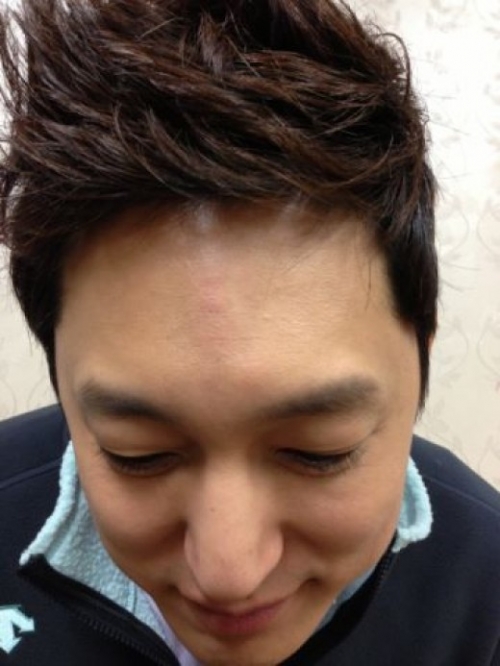 한석준은 27일 오후 자신의 트위터에 "샤이니 온유한테 딱밤 맞았다. 진짜 세다. 몇 시간 지났는데 아직도"라는 글과 함께 한 장의 사진을 게재했다.