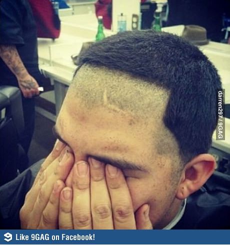 이 남성은 이마가 좁다는 이유로 앞머리를 밀어버렸다. 머리 옆 구레나룻 부분도 같이 잘라 이마가 넓어 보인다.
