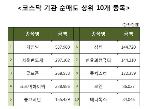 [코스닥 기관 순매도 상위 10개 종목]