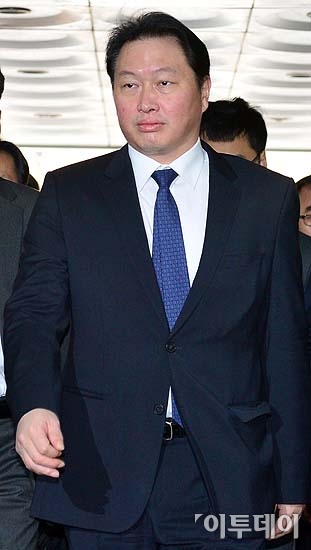 [포토]굳은표정으로 지법 들어서는 최태원 SK 회장