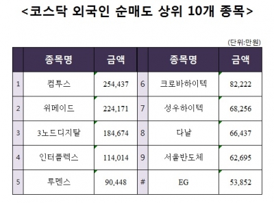 [코스닥 외국인 순매도 상위 10개 종목]