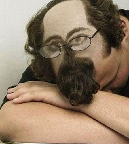 공개된 사진 속에는 한 외국인 남성이 책상 위에 엎드려 자고 있다. 하지만 언뜻 보면 이 남성의 모습은 마치 안경을 낀 사람의 얼굴처럼 보인다. 또 다른 얼굴이 긴 수염을 늘어뜨린 채 정면을 또렷하게 응시하고 있는 것 같이 보여 놀라움을 자아낸다.