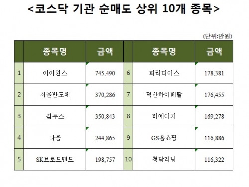 [코스닥 기관 순매도 상위 10개 종목]