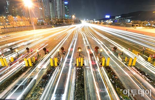 설 연휴 마지막 날인 11일 저녁 경기 성남시 궁내동 서울요금소에 고향에서 명절을 보낸 귀경차량들이 들어오고 있다.