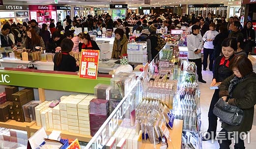 11일 서울 중구 소공동 롯데면세점 본점에서 중국최대 명절인 춘절(2월9~15일)을 맞아 한국을 찾은 중국인 관광객들이 쇼핑을 하고 있다. 한국관광공사는 춘절 연휴기간 중국인 관광객이 작년보다 25% 증가한 6만 3천명에 이를 것으로 내다 봤다.