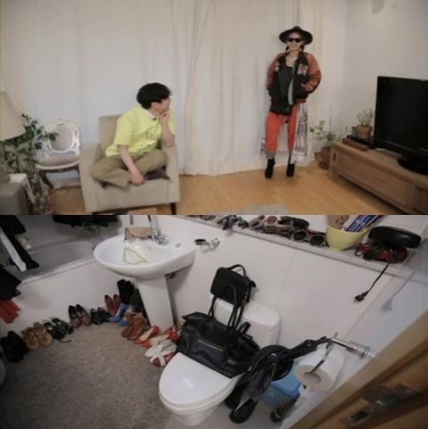 김나영은 화장실을 드레스룸으로 개조해 변기를 백 수납 선반으로 활용하는가 하면 화장대는 구두 수납장으로 변신시켰다.