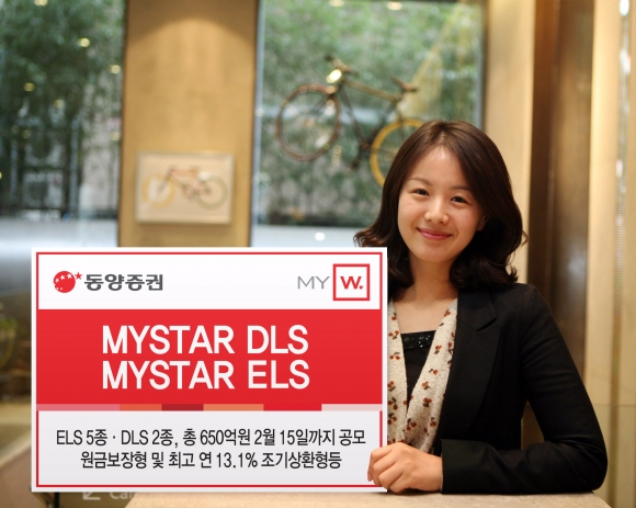 동양증권은 오는 2월15일(금)까지 사흘간 원금보장형 ELS 1종과 조기 상환이 가능한 원금비보장형 ELS 4종, 스텝다운형 및 쿠폰지급형 DLS 2종 등 총 7종의 ELS, DLS 상품을 650억원 규모로 공모한다.